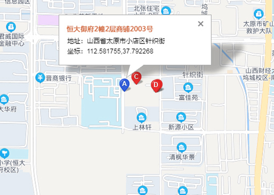 地址:山西省太原市小店區針織街20號恒大御府2幢2層商鋪2003號